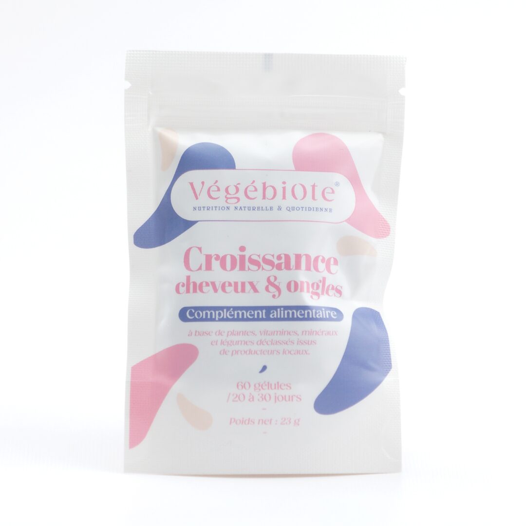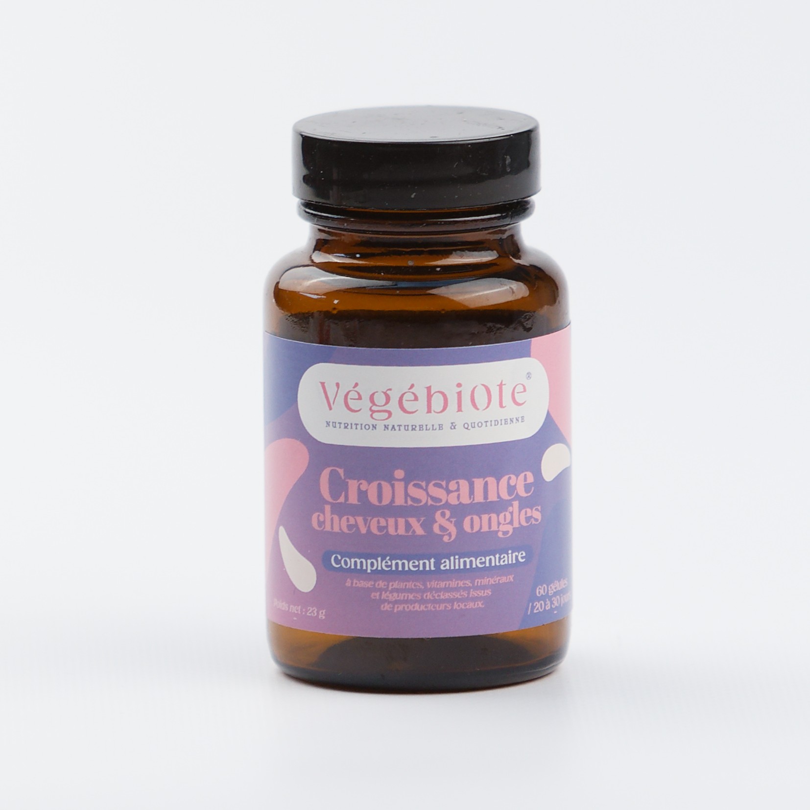 Avec la formule CROISSANCE CHEVEUX & ONGLES, le laboratoire VEGEBIOTE® associe son ingrédient phare PREBIOXY® avec des extraits de plantes et actifs nutritionnels efficaces sur la croissance des cheveux et des ongles. La Vit B8, le sélénium et le zinc contribuent au maintien de cheveux normaux. La roquette favorise la croissance des cheveux en participant à la stimulation du bulbe pileux. L’ortie soutient les ongles et cheveux, ainsi que la vitalité, et facilite les fonctions d’élimination de l’organisme.